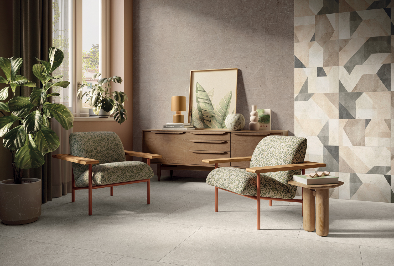 Kolekce Surround čerpá inspiraci ze spojení dvou typů vápenců: kamene Jura a klasického vápence. Jemné fosilie a charakteristické detaily těchto hornin vdechují dlažbě elegantní, vyváženou a především útulnou krásu.